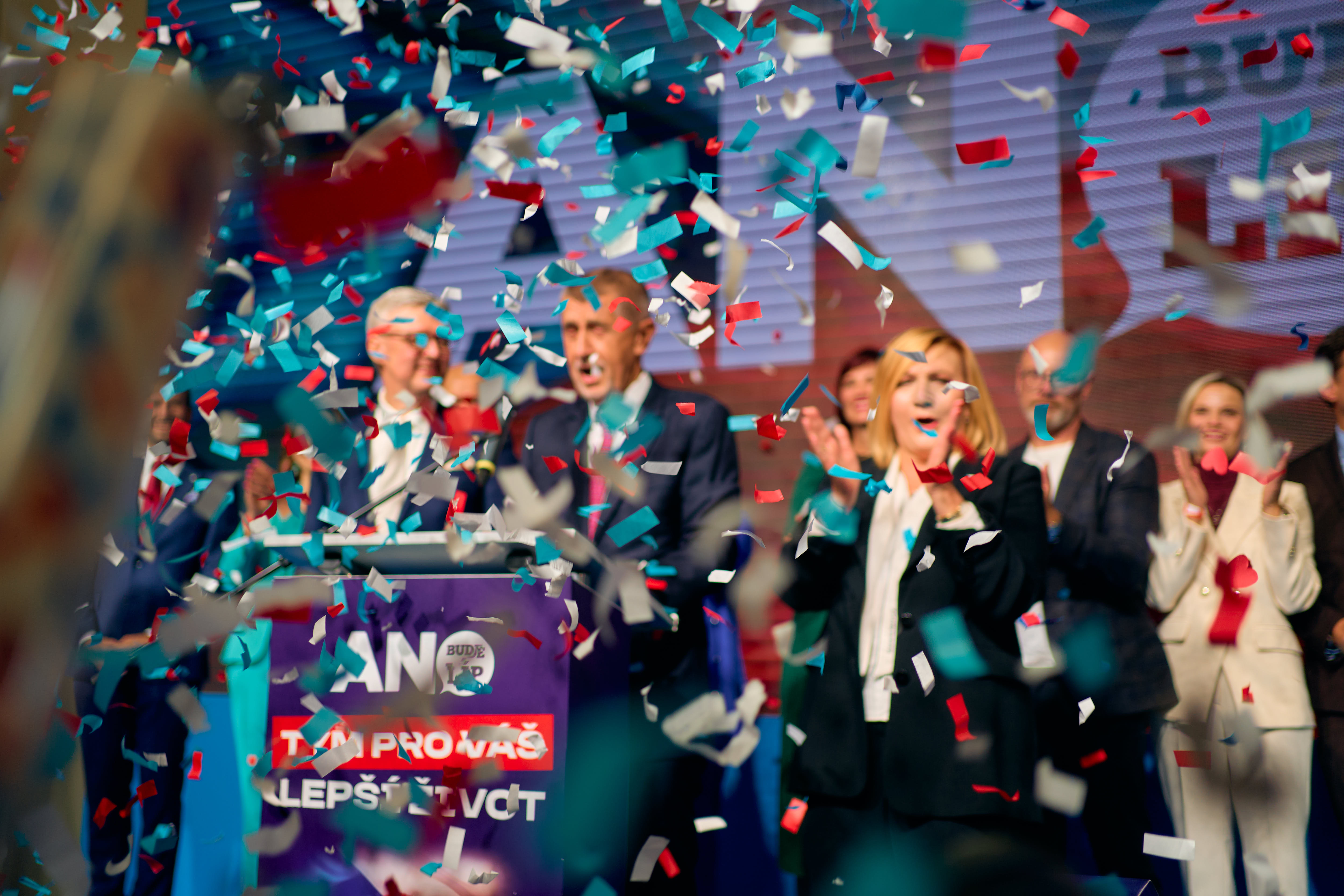Galerie | OBRAZEM: Babiš štáb ANO po oslavách opustil. Odjel jednat s Motoristy a SPD