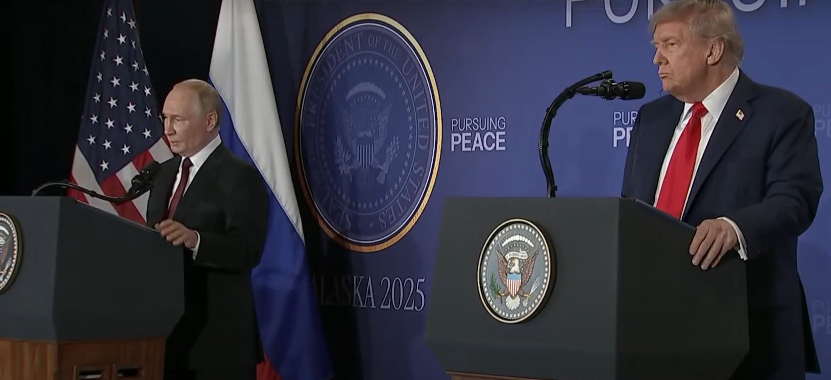 Vladimir Putin a Donald Trump uspořádali po summitu na Aljašce tiskovou konferenci